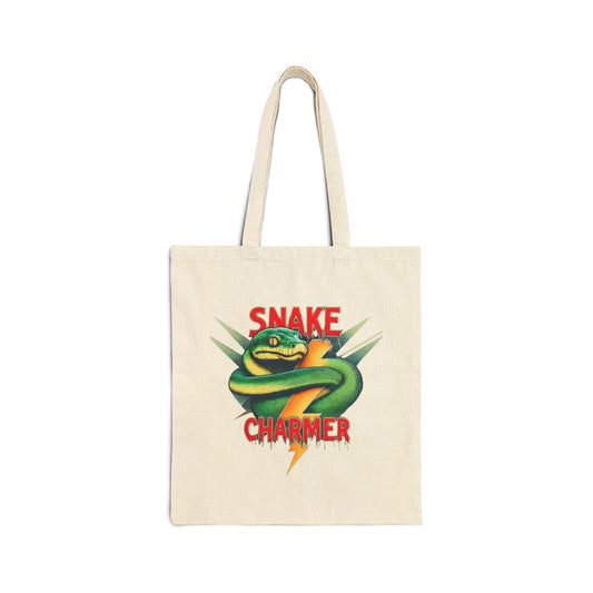 Snake Charmer Cotton Canvas Tote Bag, Eco-Friendly Shopper, Unique Gift for Her, Vintage-Style Bag, Travel & Grocery Tote